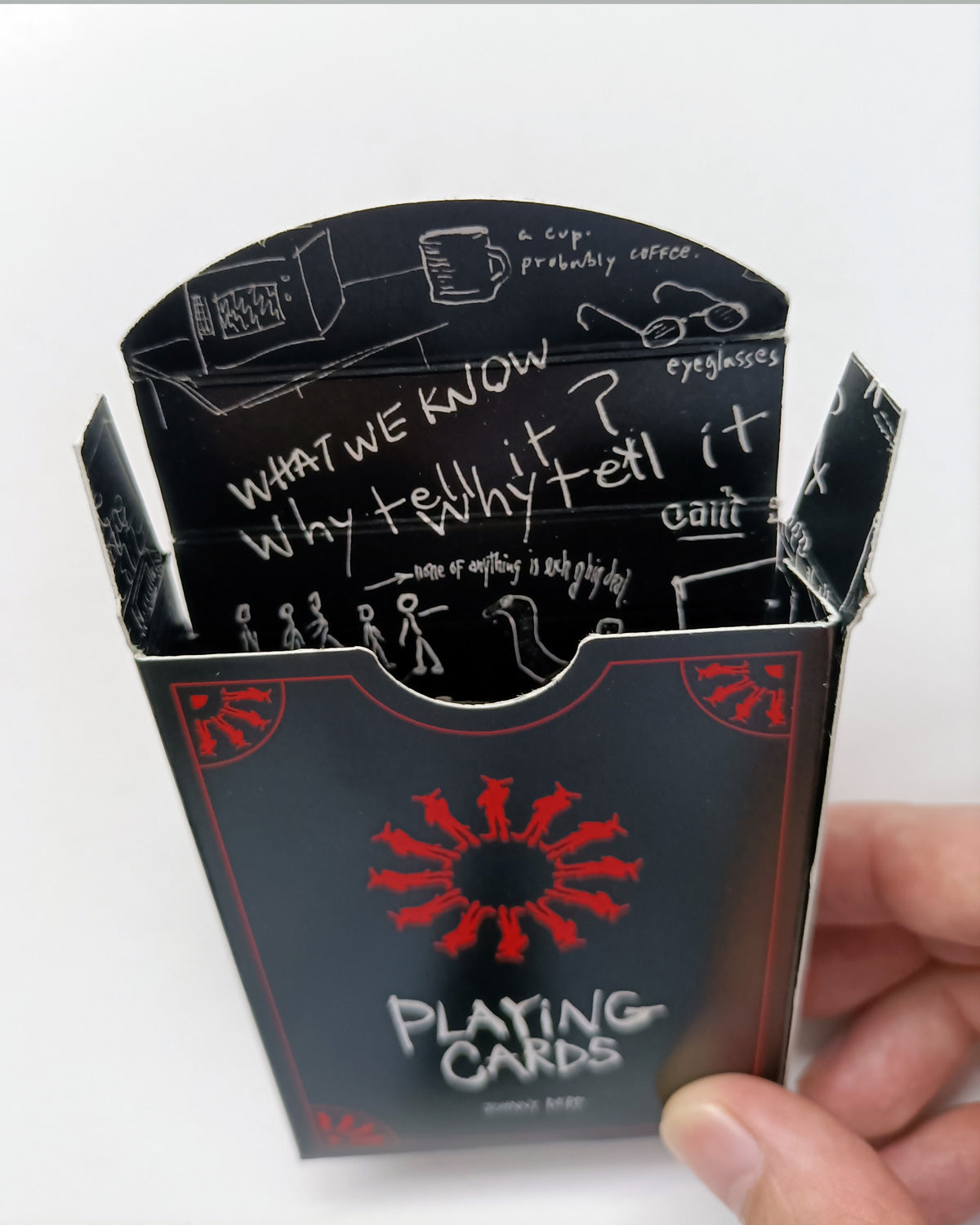 デッキ全体にジョニーの代表的なアートワークが随所に散りばめられています。カジノクオリティのトランプで、The Bunnymanと共に深夜のゲームを楽しむのに最適です。